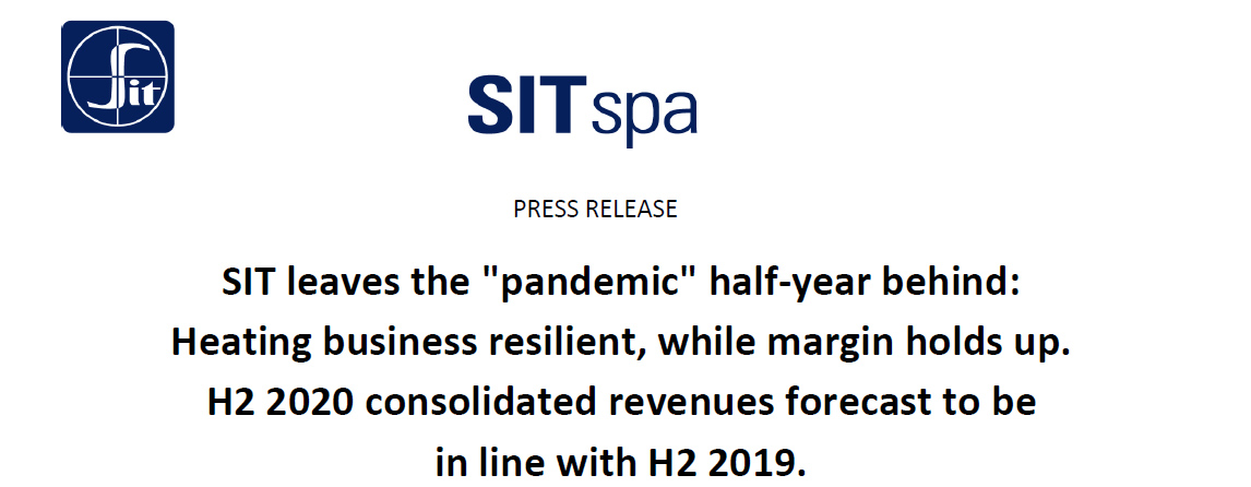 SIT leaves the "pandemic" half-year behind: Heating business resilient, while margin holds up. H2 2020 consolidated revenues forecast to be in line with H2 2019.