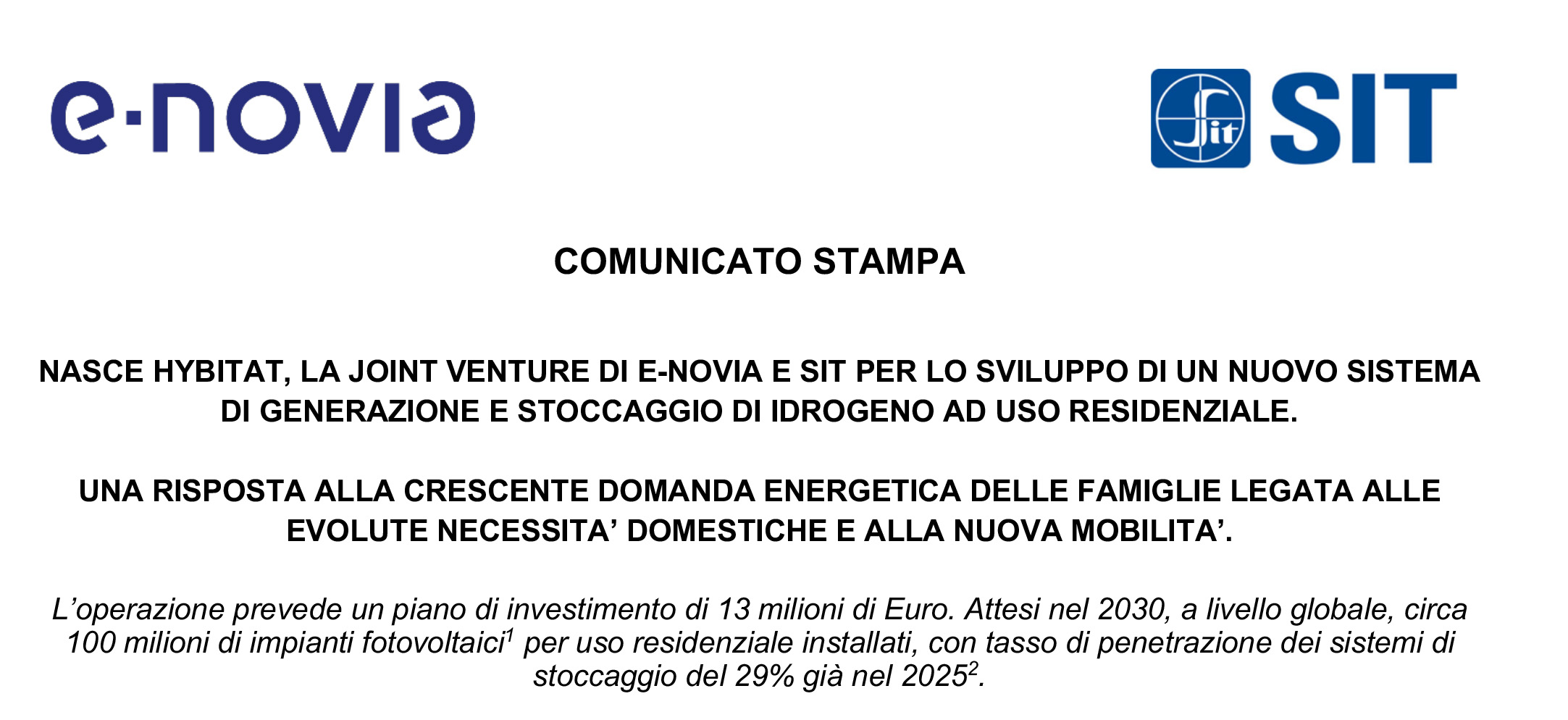 Milano-Padova, 10 luglio 2023 – Le società e-Novia e SIT, quotate su Euronext - Borsa Italiana, informano di