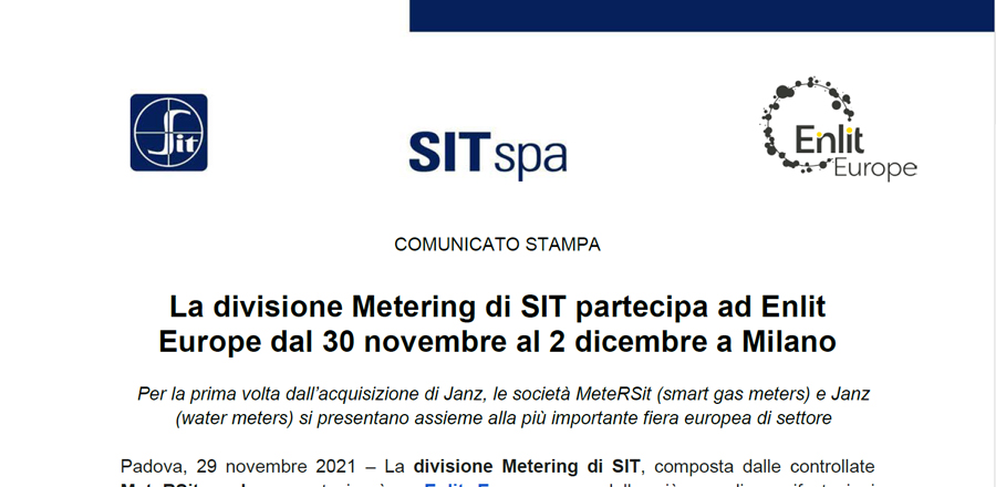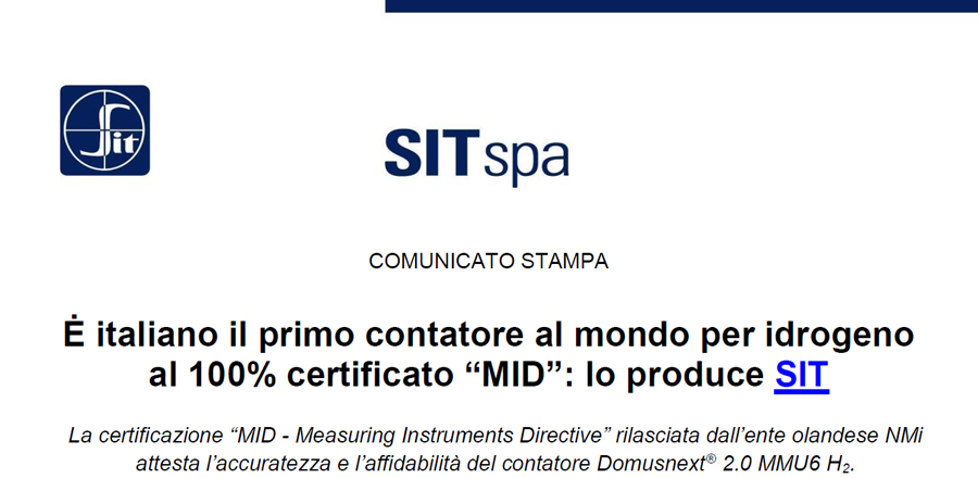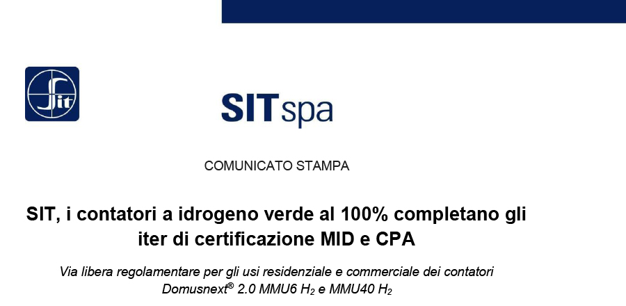 Via libera regolamentare per gli usi residenziale e commerciale dei contatori Domusnext® 2.0 MMU6 H2 e MMU40 H2. Padova, 3 marzo 2022 - SIT, multinazionale quotata al segmento Euronext Milan di Borsa Italiana che crea soluzioni intelligenti per il controllo delle condizioni ambientali